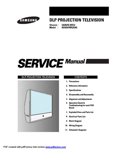 Read SAMSUNG DLP SERVICE MANUALS Doc Internet Archive