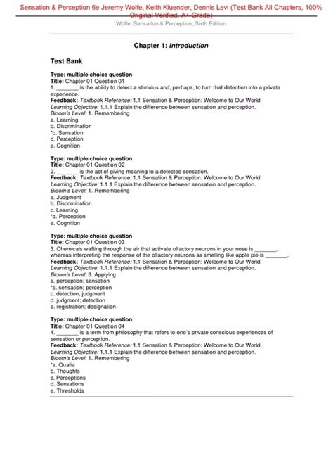 Download online SENSATION AND PERCEPTION WOLFE TEST BANK ANSWER Doc